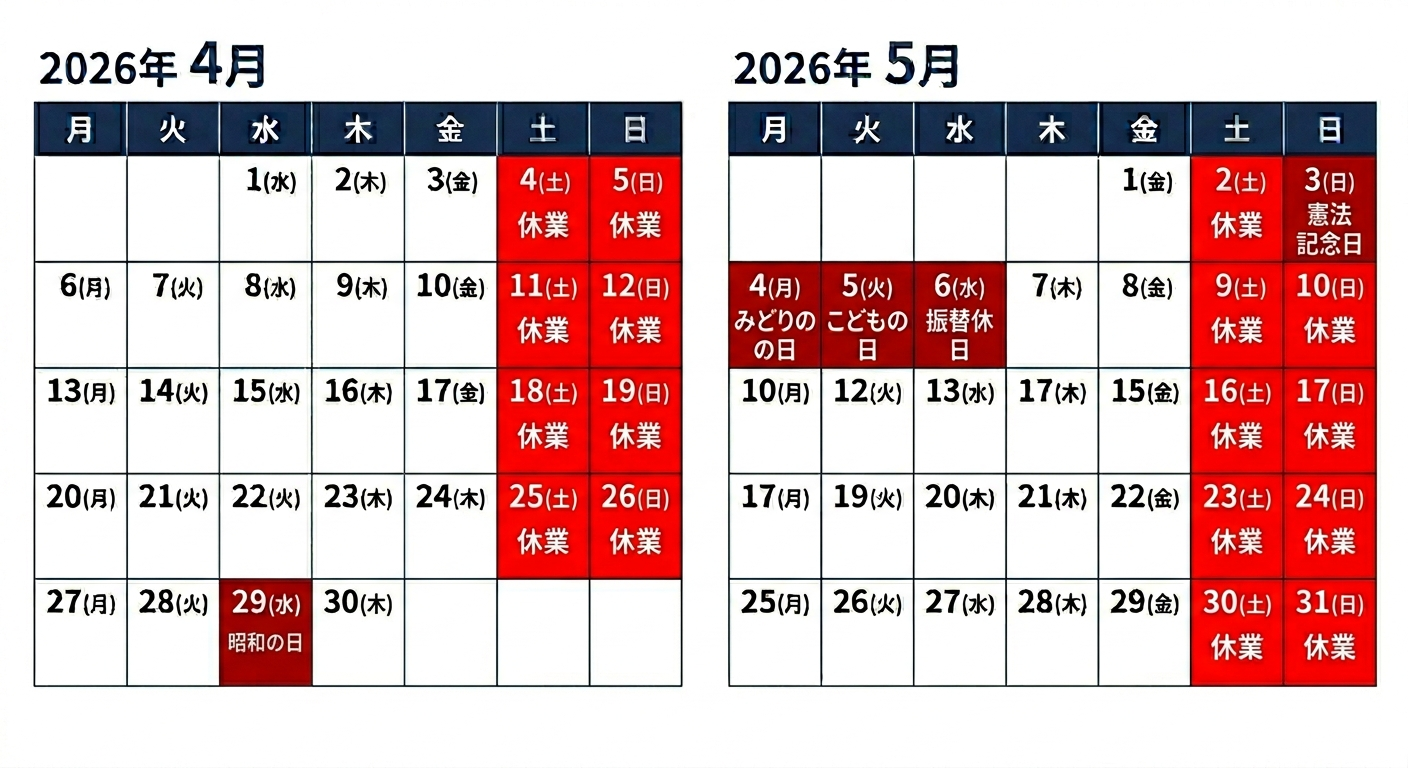2026年GWの営業に関するお知らせ No.REK2026001 2026年4月10日 アールエナジー株式会社 拝啓貴社ますますご清栄のこととお喜び申し上げます。平素は格別のお引き立てを賜り誠にありがとうございます。さて、来たるGWの期間につきまして、営業日及び休業日を下記の通りとさせて頂きます。何かとご迷惑をおかけ致しますが、何卒宜しくお願い申し上げます。 FLOCS series REO series 水処理装置