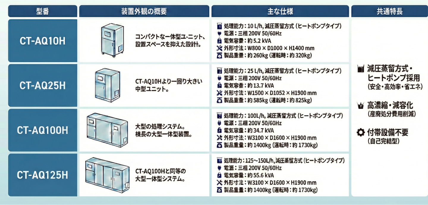 処理能力は1時間あたり 10L / 25L / 100L / 125L の4タイプ